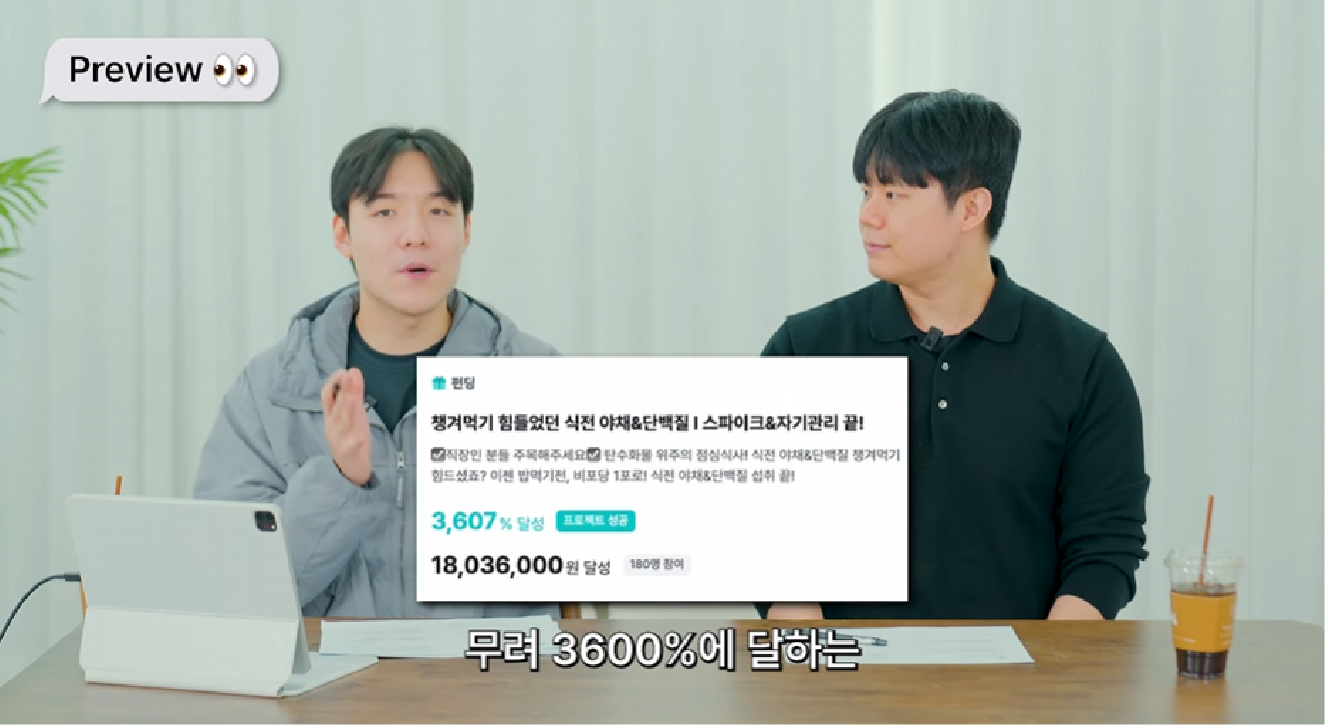 자사 제품, 첫 펀딩 1.2억 달성 정식 출시 1달 후, 회원수 1875명 달성