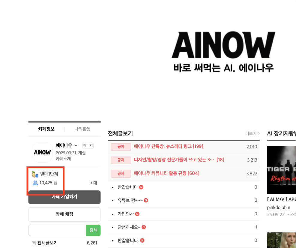 에이나우는 국내 최대 규모의 AI 커뮤니티입니다.